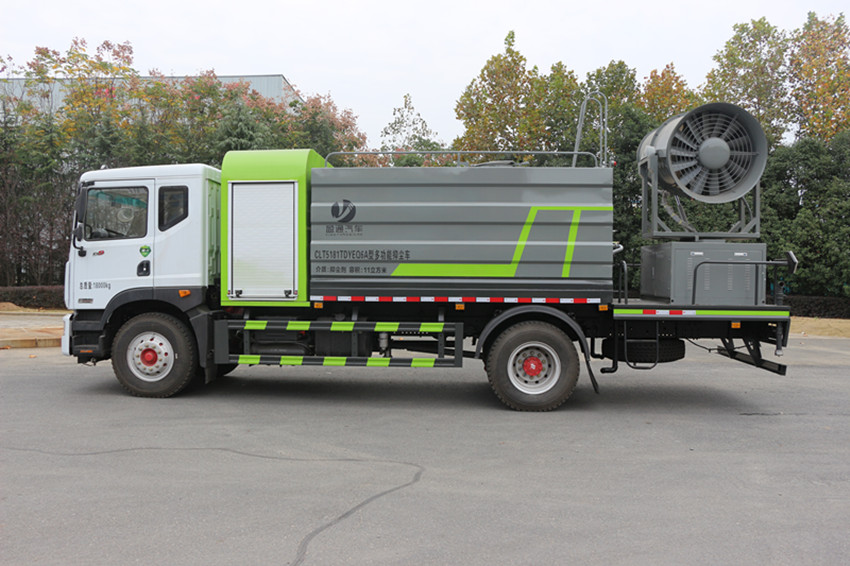 東風D9大型抑塵灑水車 整車型號 CLT5181TDYEQ6A 型多功能抑塵車 2 發動機型號 YCS04200-68 3 發動機馬力/功率 玉柴 200 馬力/147KW 4 發動機排量 4156ML 5 變速箱 法士特 8 檔(帶高低檔) 6 輪胎規格 10.00 鋼絲胎 7 軸距 4500 8 總質量 18000KG 9 整備質量 8900KG 10 額定載質量 8905KG 11 整車尺寸(長×寬×高) 8.68*2.5*3.8 12 罐體容積 12 方 13 燃料種類 柴油 14 排放標準 國六 15 水泵型號 60/90 16 罐體材質 Q235 碳鋼產品功能展示 前沖鴨嘴 后灑 后對沖 高炮 側噴 霧炮