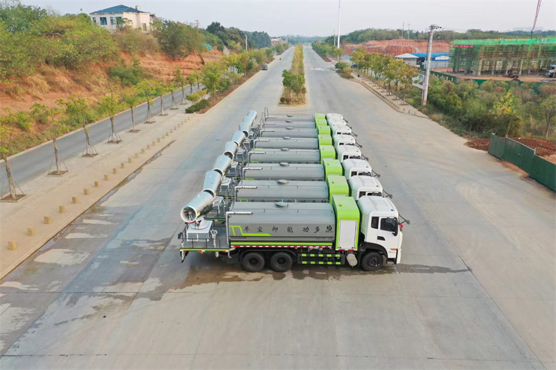 一. 產品簡述 抑塵車又稱為綠化噴灑車、多功能灑水車、園林綠化灑水車。抑 塵車適合于各種路面沖洗,樹木、綠化帶、草坪綠化,道路、廠礦企業 施工建設,高空建筑沖洗。抑塵也可以作為運水車使用,最常見的車 型有綠化噴灑車、多功能灑水車、綠化灑水車幾大類。 我公司產品標配前噴(鴨嘴)、后沖、后灑、側噴、后置式工作 平臺,平臺上配置綠化水炮(可 360°旋轉,既可以調成柱狀,也可 以調成霧狀,更可以調成直沖狀、大雨、中雨、小雨、毛毛雨),配 備優質大功率專用灑水泵(可自吸自排,可從河里或池塘抽水到罐體), 取力器,雜物過濾網,消防接口,自流球閥系統、取力器、球閥、濾網 均為國家標準產品,主管道加粗,法蘭墊、法蘭盤加厚,大通徑球閥。 整體具備性能優良安全可靠、效率高、流量大、維修方便等特點。