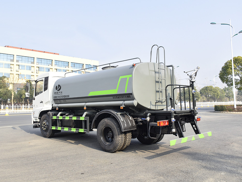 東風天錦12放灑水車標配前噴(鴨嘴)、后沖、后灑、側噴、后置式工作 平臺,平臺上配置綠化水炮(可 360°旋轉,既可以調成柱狀,也可 以調成霧狀,更可以調成直沖狀、大雨、中雨、小雨、毛毛雨),配 備優質大功率專用灑水泵(可自吸自排,可從河里或池塘抽水到罐體), 取力器,雜物過濾網,消防接口,自流球閥系統、取力器、球閥、濾網 均為國家標準產品,主管道加粗,法蘭墊、法蘭盤加厚,大通徑球閥。 整體具備性能優良安全可靠、效率高、流量大、維修方便等特點。