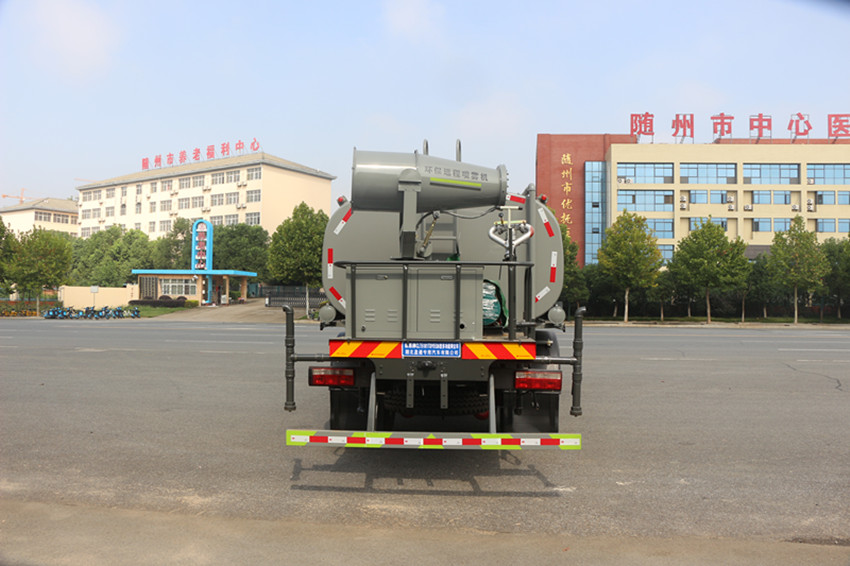 罐體容積可做12一15立方,上裝標準配置可為:前噴,后灑,后位花酒帶側噴,后置加寬工作平臺帶高炮。(根據用戶的不同需求,可以在罐體尾部工作平臺上安裝30一50米霧炮,噴藥裝置藥盤,室內操作的大鴨嘴,本田泵,長警燈等)。