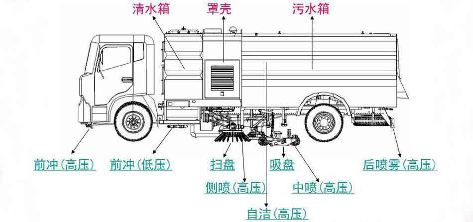 東風(fēng)D9洗掃車上裝配置:帶不銹鋼箱體,容積為9立方,帶2個(gè)中置掃盤,康明斯170馬力副發(fā)動(dòng)機(jī);意大利馬達(dá);德國(guó)高壓水泵(前沖/側(cè)噴/中噴/后噴霧/沖洗水槍/垃圾箱自潔裝置);萬向高壓路沿清洗噴頭,威龍低壓泵(前沖);不銹鋼垃圾箱;不銹鋼管高壓管路;德國(guó)控制器;韓國(guó)控制箱;PLC一鍵控制;尾部LED箭頭燈;機(jī)油、垃圾箱、水箱均帶防溢低水位報(bào)警裝置;倒車及洗掃狀態(tài)室內(nèi)監(jiān)視器。18m高壓沖洗卷盤。清掃寬度3.5m;清洗壓力10MPa;吸入粒度φ110mm。