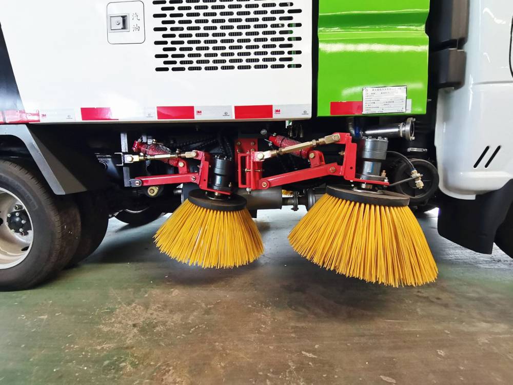 上裝標配:帶4個掃盤、五十鈴75馬力副發動機、三洋馬達、施耐德控制開關、海普瑞斯電磁閥組、無級變速自動離合器、免維護離心式自動風機、不銹鋼垃圾箱、中聯北極星電子水泵,尾部LED箭頭指示燈、手動泵應急系統、垃圾舉升自卸功能。