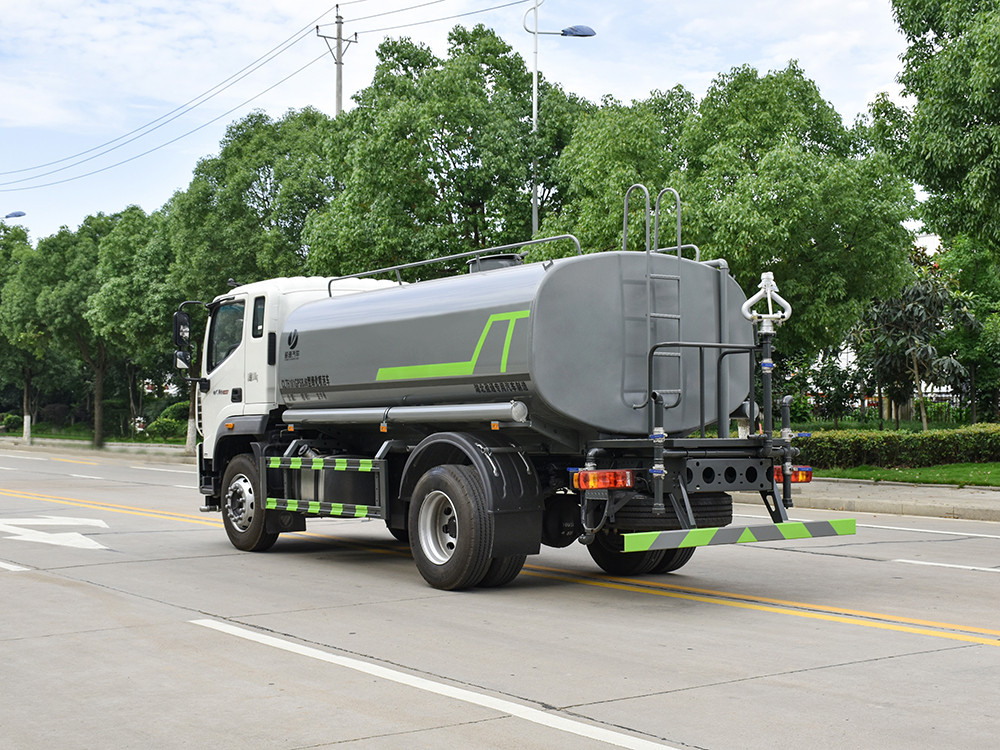 該車主要用于城鄉園林綠化,路面噴灑,除塵和降溫;主要裝置為罐體及噴灑裝置;罐體總容量:11.4立方米,罐體有效容積:10.86立方米,罐體外形尺寸(長×長軸×短軸)(mm):5200×2300×1400;ABS型號為CM4XL-4S/4M,生產廠家為廣州瑞立科密汽車電子股份有限公司;隨底盤選裝駕駛室;側、后防護材料均為:Q235碳鋼,連接方式均為:螺栓連接,后部防護截面尺寸(mm):120×50,后部防護離地高度(mm):470.采用4500mm軸距。選裝限速裝置,限制最高車速80km/h。選裝后部箭頭燈,選裝后部弧形噴灑裝置,選裝油箱電瓶安裝位置。選裝噴灑裝置樣式,選裝水炮支架位置,選裝自動球閥安裝位置。
