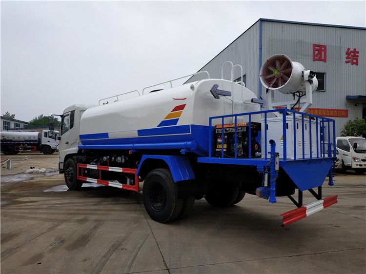 主要由發動機帶動變速箱,變速箱上安裝的取力器帶動灑水泵,灑水泵產生動力,將罐體內部的液體通過管網噴灑出去。工作范圍:自吸高度:≤7m,灑水寬度:≥14m,最大射程:≥28m;可調節成柱狀,射程≥28m;也可調節成霧狀,射程≥5m。