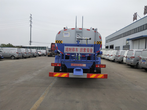 12噸灑水車罐體為橢圓形或方形,采用武鋼優質碳鋼板制成,罐體倉內1.5米一道隔板,具有防波防蕩作用,還可按用戶要求進行專業的防腐防銹處理,罐體外可用發泡或巖棉加裝保溫層起保溫功能。可選裝藥盤,藥泵、高壓噴藥設備、非車帶泵動力等.、罐內防腐防銹、多方位進出水接頭、氣動閥、警燈等先進設施,以滿足不同用戶需求。