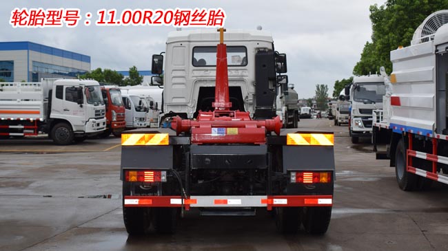 配套15~20立方米勾臂垃圾箱,強度一體式勾臂,雙杠液壓,國產多路閥、油缸,可選裝配套移動壓縮垃圾箱。