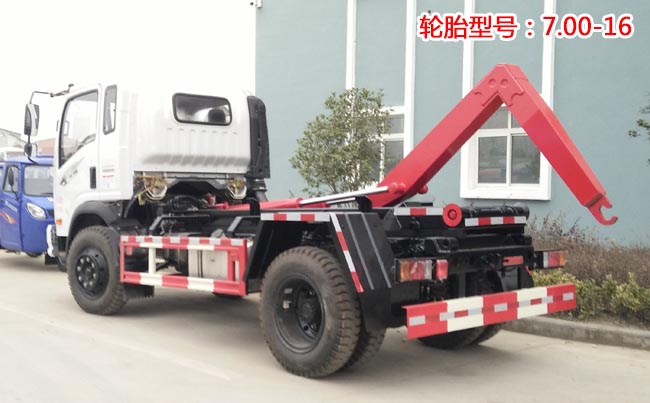 重汽王牌7系勾臂式垃圾車,重汽王牌7系底盤,采用錫柴87馬力發(fā)動機(jī),5檔變速箱,軸距3.36米,輪胎型號:7.00-16,帶ABS,方向助力。