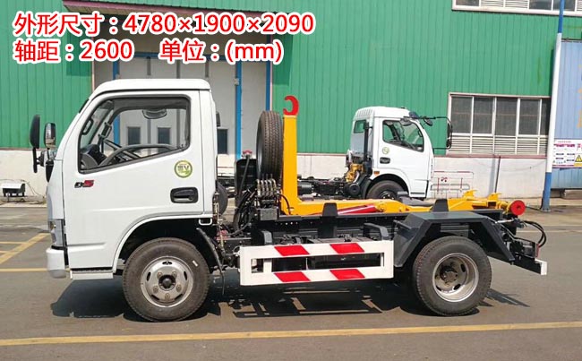 風小多利卡D5勾臂式垃圾車,東風小多利卡D5駕駛室,云內102馬力發動機,5檔變速箱,軸距2.6米,輪胎型號6.50-16輪胎,帶ABS,方向助力。
