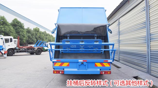 新款無(wú)筋條箱體,平面圓弧美觀(guān)大方,有效壓縮容積8立方,尾部帶翻轉(zhuǎn)上料機(jī)構(gòu),電控手動(dòng)雙操控器,駕駛室與車(chē)尾部雙控制箱,尾部帶3厘米厚橡膠密封壓條,帶污水收集槽,大容量污水箱。箱體可按要求噴繪圖案和字樣。