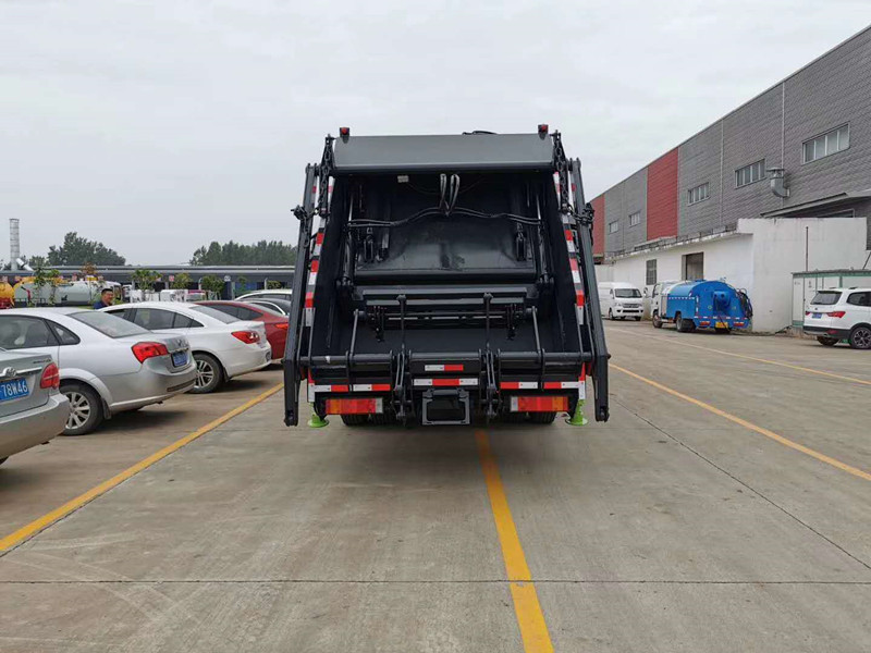 6. 方便的操作控制,作業(yè)控制盒分別安裝在駕駛室內(nèi)和車尾左右,駕駛室內(nèi)的作業(yè)控制盒可控制推擠卸料和選擇操作模式(如自動或手動),車尾的作業(yè)控制盒則控制壓填機構(gòu)和翻桶機構(gòu)的作業(yè),使用操作十分方便。特別是在垃圾填埋場,作業(yè)人員無須下車即可完成卸料和污水排放。