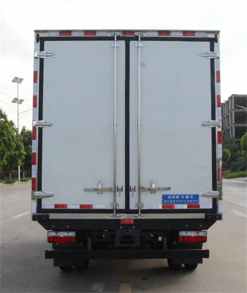 東風4.2米冷藏車該車用于冷藏運輸的廂式汽車,裝備有隔熱結構的車廂和制冷裝置;貨廂頂部封閉,不可開啟.側/后下部防護裝置材料:Q235碳鋼,連接方式均為螺栓連接;后下部防護截面尺寸(mm):100×50,離地高度:450mm.ABS型號:ABS/ASR-24V-4S/4M,廠家:襄陽東風隆誠機械有限責任公司.發動機型號/油耗申報值(L/100km)對應關系為:ZD30D16-6N/11.5,YCY24140-60/11.3,Q28-130E60/11.2,YCY30165-60/11.3,Q23-115E60/11.1,Q23-136E60/10.9.該車選裝直接供電式ETC車載裝置.選裝同等功率制冷機組,外觀形狀可不同.該車型整備質量包含隨車工具,不包含備胎.貨廂重量為850kg,底板材質為玻璃鋼板+擠塑板,厚度為80mm,側板材質為玻璃鋼板+擠塑板,厚度為80mm.整車長度/前懸/后懸對應關系(mm):5998/1061(1035,1021)/1629(1655,1669),5995/1061(1035,1021)/1626(1652,1666).隨底盤選裝駕駛室,選裝廂體側面及后部樣式.