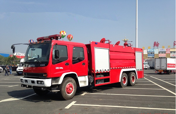 五十鈴11-12噸雙橋消防車(chē)采用慶鈴QL1250WPFZY底盤(pán)改裝,平頭雙排駕駛室,五十鈴6HK1-TCH發(fā)動(dòng)機(jī),300馬力,罐體容積11-12立方米(水罐容積8立方米,泡沫罐容積3立方米);整車(chē)結(jié)構(gòu)緊湊,方便靈活,動(dòng)力性能好,車(chē)速高,能自由進(jìn)出鄉(xiāng)村狹窄道路及小區(qū),具有大型消防車(chē)的全套消防功能,上裝箱體的上裝骨架全部采用引進(jìn)歐洲技術(shù)生產(chǎn)的鋁合金型材制造,整車(chē)的重量減少,機(jī)動(dòng)性能和整車(chē)載重量提高。除了裝備消防水泵及器材以外,還設(shè)有較大容量的貯水罐及水槍、水炮等。可將水和消防人員輸送至火場(chǎng)獨(dú)立進(jìn)行撲救火災(zāi)。也可以從水源吸水直接進(jìn)行撲救,或向其他消防車(chē)和滅火噴射裝置供水。在缺水地區(qū)也可作供水、輸水用車(chē),主要適用于大中城鎮(zhèn)、鄉(xiāng)村狹窄街道、城市小區(qū)、繁忙的批發(fā)市場(chǎng)等場(chǎng)所的一般物質(zhì)滅火,閑暇時(shí)可用于園林噴灌、道路清灑。