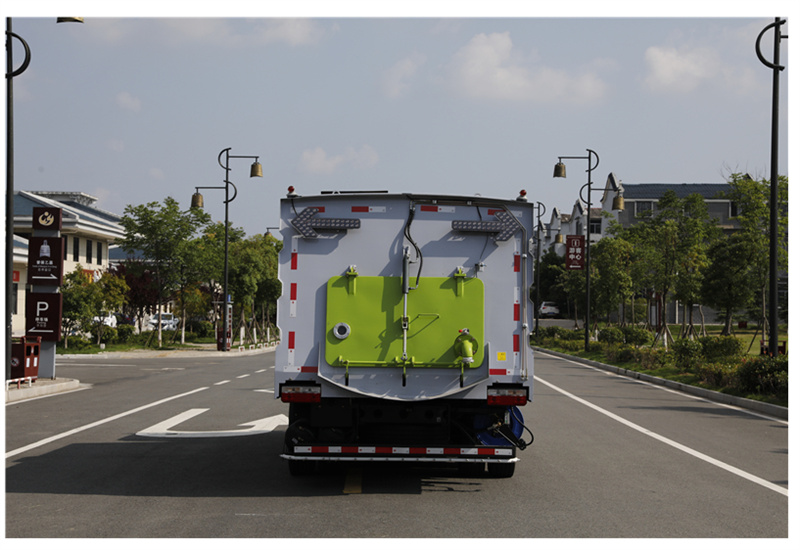 6)具備倒車保護裝置,在作業(yè)過程中如遇緊急倒車,智能化的控制系統(tǒng)會自動停止作業(yè)并收回掃盤、吸盤和側(cè)噴桿;具有防止舉升垃圾箱翻車保護;具有檢修安全保護。