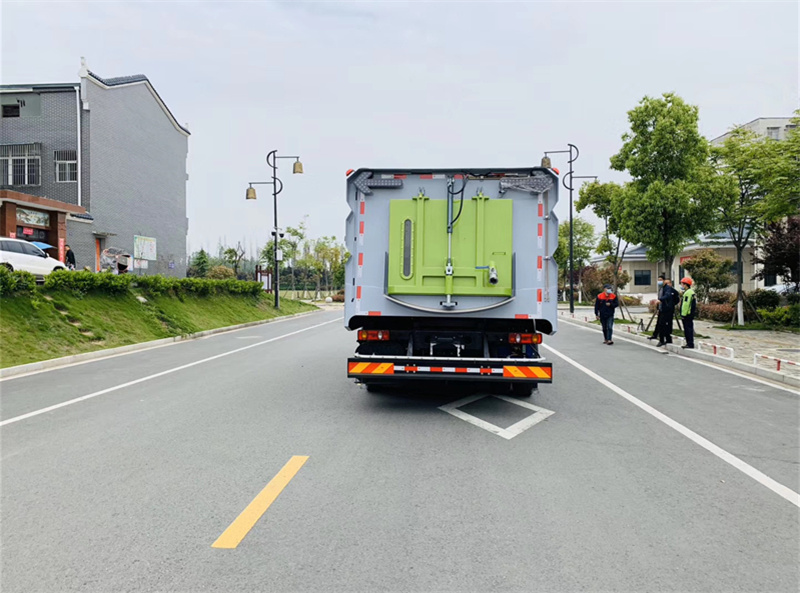 東風(fēng)18噸洗掃車,帶2個中置掃盤,天錦為康明斯170馬力副發(fā)動機;三洋馬達;高壓水泵(前沖/側(cè)噴/中噴/后噴霧/沖洗水槍/垃圾箱自潔裝置);高壓路沿清洗噴頭,低壓泵(前沖);不銹鋼垃圾箱;控制器;控制箱;PLC一鍵控制;尾部LED箭頭燈;垃圾箱、水箱均帶防溢低水位報警裝置;倒車及洗掃狀態(tài)室內(nèi)監(jiān)視器。20m高壓沖洗卷盤。