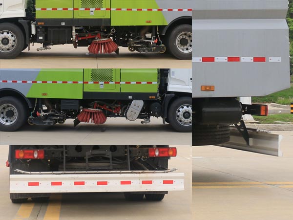 隨底盤選裝駕駛室.側面防護由專用裝置代替;后防護材料:Q235B,焊接連接, 后下部防護截面尺寸:50×200(mm),離地面高度400mm;僅采用軸距(mm):4700,5000,4500; ABS型號/生產廠家:3631010-C2000/東科克諾爾商用車制動系統(十堰)有限公司,ABS 8/東科克諾爾商用車制動系統(十堰)有限公司, 4460046450/威伯科汽車控制系統 (中國)有限公司.該車主要作用于路面的機械化清掃作業;專用裝置為掃刷、吸盤、垃圾箱。 |