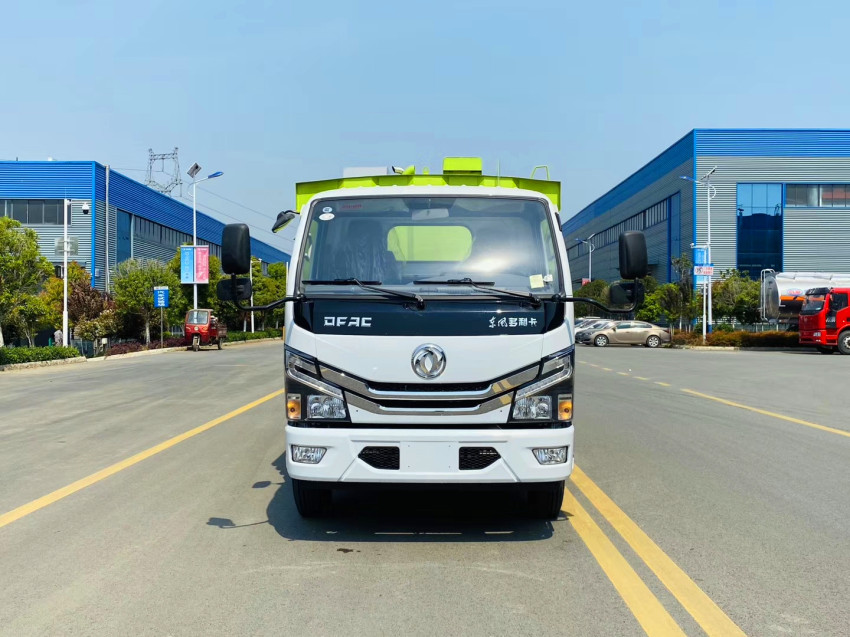 11、國六東風多利卡9方洗掃車的垃圾箱內帶有自潔功能,在垃圾傾倒完成后可將箱內的殘留垃圾沖洗干凈,減輕環衛工人的負擔。
