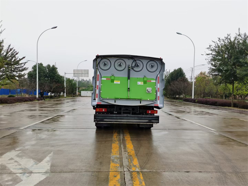 6)具備倒車保護(hù)裝置,在作業(yè)過(guò)程中如遇緊急倒車,智能化的控制系統(tǒng)會(huì)自動(dòng)停止作業(yè)并收回掃盤、吸盤和側(cè)噴桿;具有防止舉升垃圾箱翻車保護(hù);具有檢修安全保護(hù)。