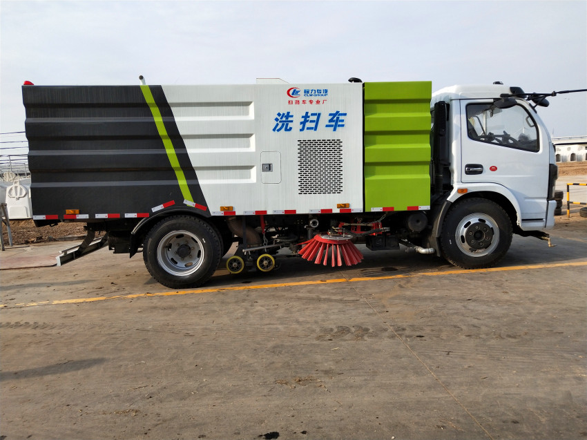 2、掃路車采用吸掃結合的方式收集垃圾,濕式除塵、電液控制,液壓傾翻卸料的作業方式對路面進行清掃作業。