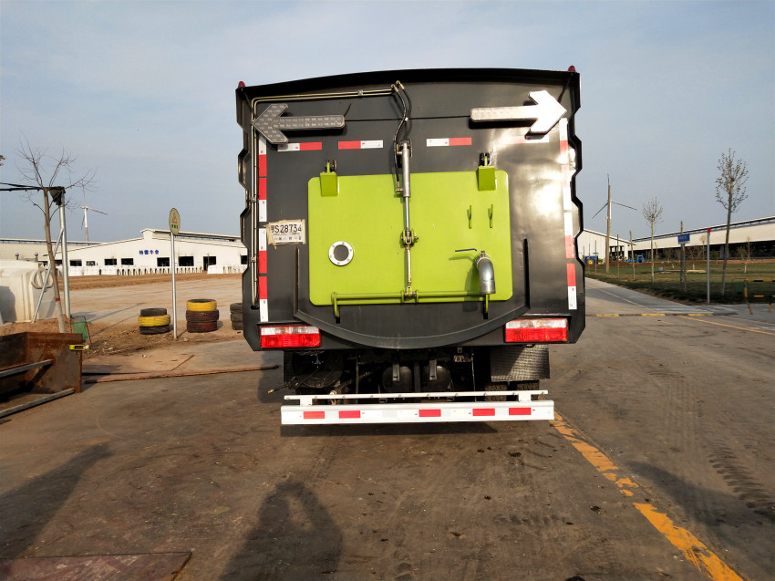 15、掃路車采用超寬后門且大于85度的開啟角度,更易于傾倒垃圾,清理垃圾箱。