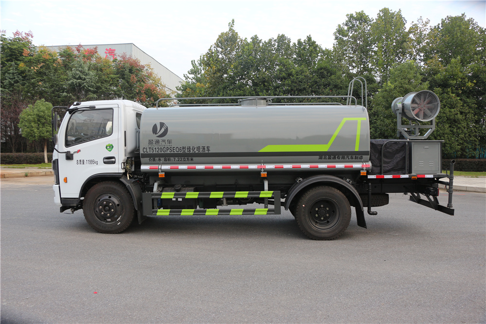 東風福瑞卡綠化噴灑車-9噸綠化灑水車報價-綠化灑水車生產廠家專用功能配置:罐體實際容積約為9立方米,采用武鋼優質碳鋼板卷壓成型。配備專用灑水泵,自吸自排,前噴后灑、側噴、后工作平臺及灑水高壓炮。灑水泵自吸高度為6米左右,整車灑水寬度14米左右,后工作平臺水炮可調成:直沖狀、大雨、中雨、小雨、毛毛雨,有效射程≥28米,整車帶接頭、水位計,自流閥。后工作平臺主管道有一個一寸的澆花接口,附送2根3米水管,1個爬梯,兩側及后保險杠。