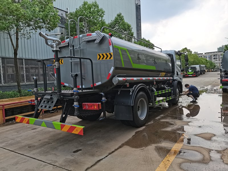 專用功能配置:罐體實際容積約為10立方米,公告有效參數8.1立方米、采用武鋼優質碳鋼板卷壓成型。配備專用灑水泵,自吸自排,前噴后灑、側噴、后工作平臺及灑水高壓炮。灑水泵自吸高度為6米左右,整車灑水寬度14米左右,后工作平臺水炮上下左右360旋轉可調成:直沖狀、大雨、中雨、小雨、霧狀,有效射程≥28米,整車帶接頭、水位計,自流閥。后工作平臺主管道有一個一寸的澆花接口,附送2根3米水管,1個爬梯,兩側及后保險杠。 |