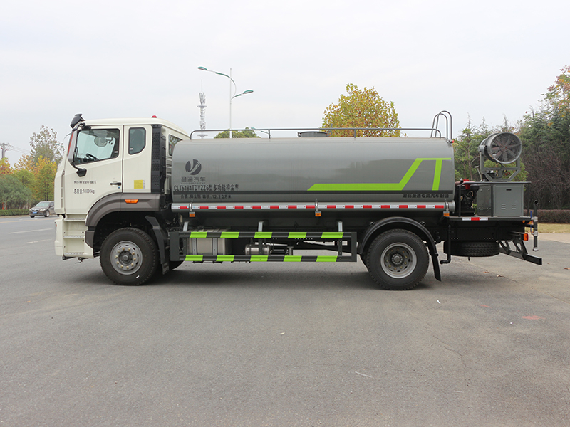 標(biāo)準(zhǔn)配置灑水車主要裝備有:前沖(沖洗公路路面)、后灑(公路路面養(yǎng)護(hù))、側(cè)噴、高位側(cè)花灑(路邊綠化帶優(yōu)化);后工作平臺(tái)高壓水炮,可調(diào)節(jié)成柱狀,射程≥28m;也可調(diào)節(jié)成霧狀,射程≥30米,水泵自吸高度:≤7m,灑水寬度:≥15m。側(cè)防護(hù)網(wǎng),自流閥,消防接頭。灑水車水泵為常壓水泵,功能可以抽水、排水。另外根據(jù)用戶要求,可加消防泵、噴霧機(jī)、農(nóng)藥卷盤、農(nóng)藥柱塞泵。罐內(nèi)可以做防腐防銹、電磁閥氣動(dòng)閥自動(dòng)放水等****,以滿足不同用戶需求。
