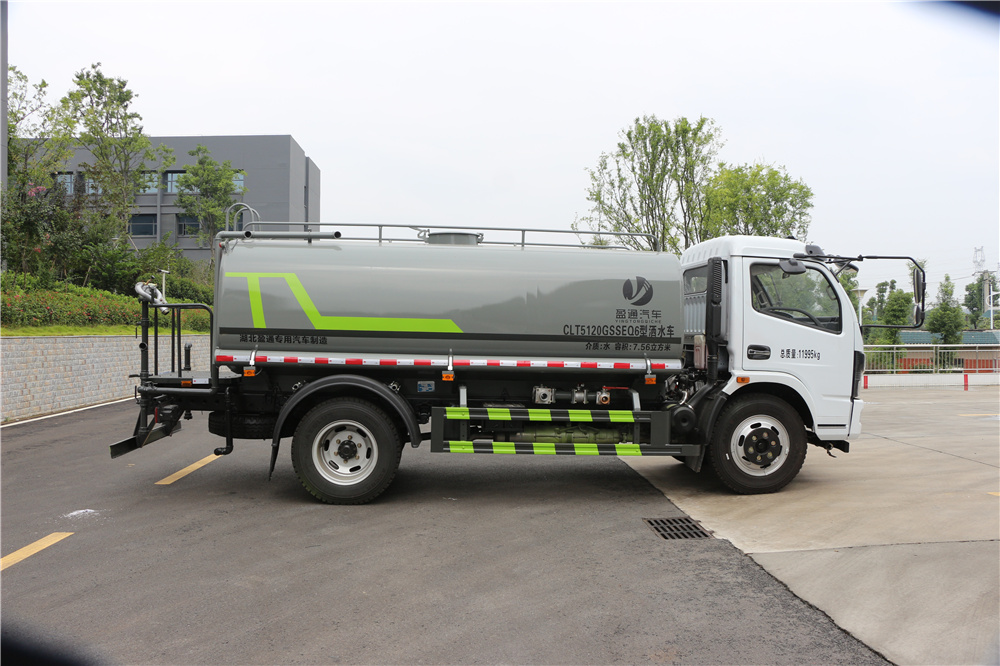 專用功能配置:罐體實際容積約為9.35立方米,采用武鋼優質碳鋼板卷壓成型。配備專用灑水泵,自吸自排,前噴后灑、側噴、后工作平臺及灑水高壓炮。灑水泵自吸高度為6米左右,整車灑水寬度14米左右,后工作平臺水炮可調成:直沖狀、大雨、中雨、小雨、毛毛雨,有效射程≥28米,整車帶接頭、水位計,自流閥。后工作平臺主管道有一個一寸的澆花接口,附送2根3米水管,1個爬梯,兩側及后保險杠。