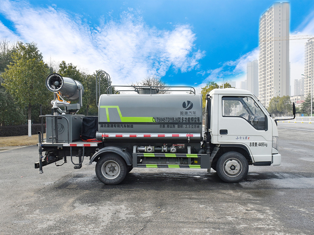 福田小卡 2.7 方抑塵車主要技術參數 序號 名稱 型號、規格 1 整車型號 CLT5045TDYBJ6 型多功能抑塵車 2 發動機型號 Q23-95C60 3 發動機馬力/功率 全柴 95 馬力/70KW 4 發動機排量 2300ML 5 變速箱 蒙沃 5 檔箱 6 輪胎規格 6.00 鋼絲胎 7 軸距 2600 8 總質量 4495KG 9 整備質量 2700KG 10 額定載質量 1665KG 11 整車尺寸(長×寬×高) 5.365*1.9*2.6 12 罐體容積 2.7 方 13 燃料種類 柴油 14 排放標準 國六 15 水泵型號 40/50 16 罐體材質 Q235 碳鋼