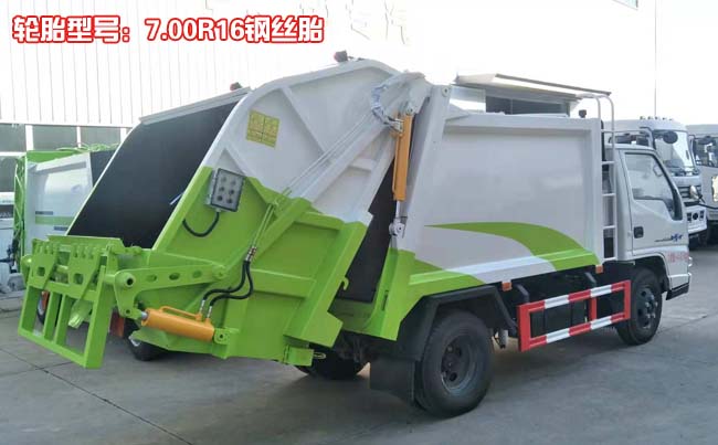 改裝容積4立方米,廂體材料為優質碳鋼,厚度邊3底4(單位:mm):由廂體、裝料機構、壓縮機構、卸料機構、油泵、油缸、控制閥等組成的液壓機構組成。裝料機構由支架,連桿機構,凸輪,掛鉤等組成。在油缸作用下,將垃圾桶內的垃圾自動翻轉倒入料斗內。選裝:1、掛桶翻料機構,2、簸箕翻料機構。